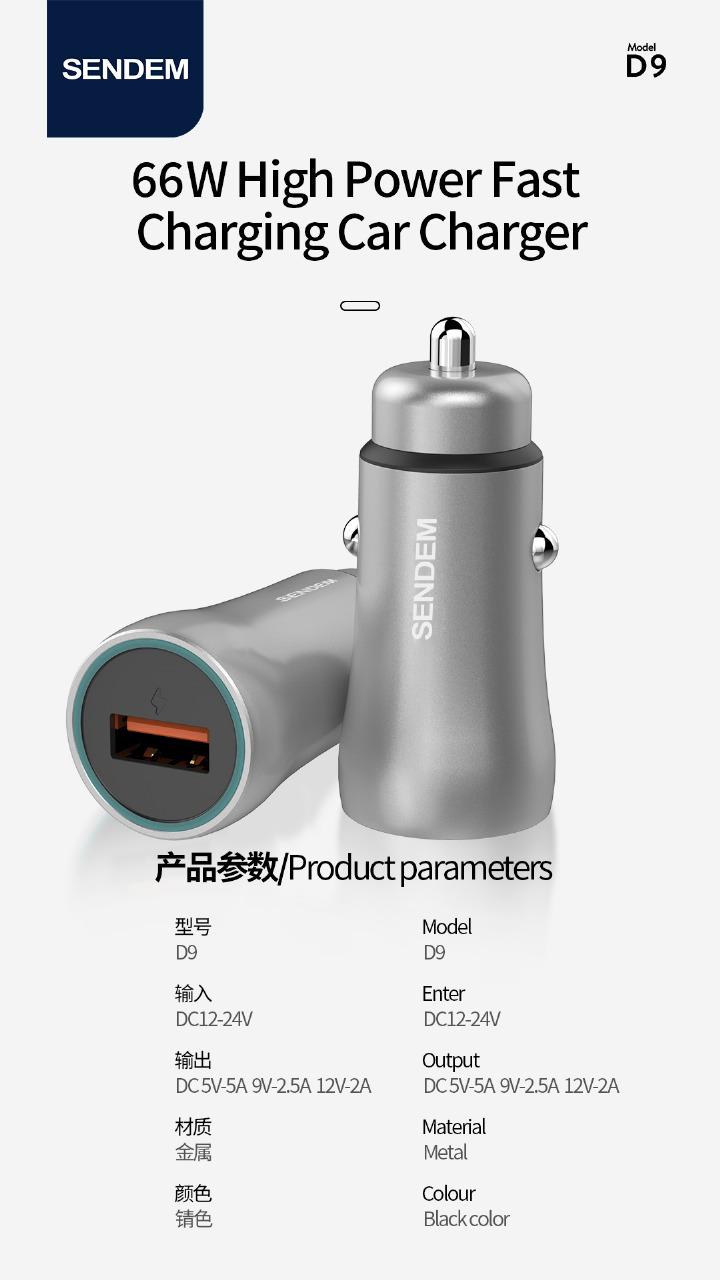 راس شاحن SENDEM للسياره مخرج واحد 66 وات
